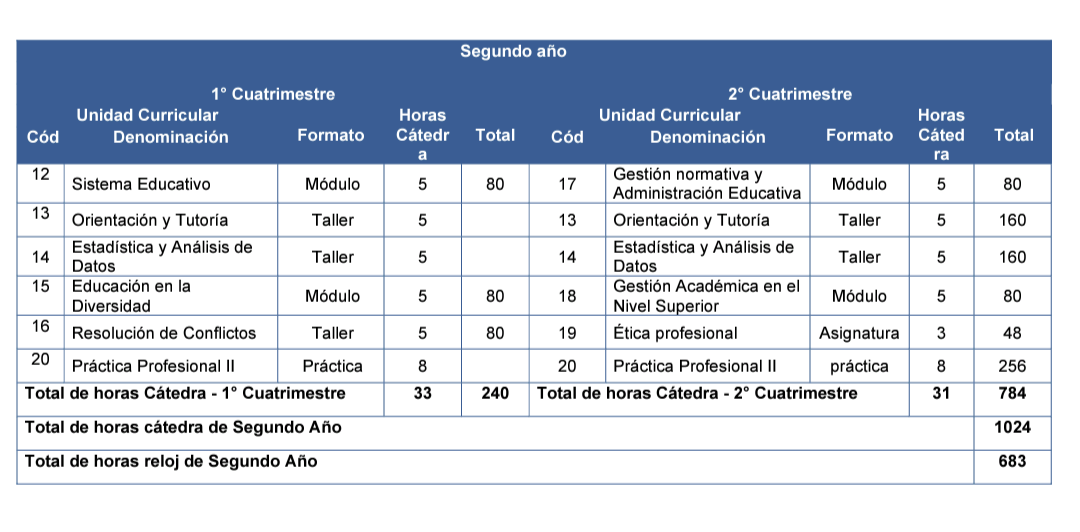 Gobierno de la Provincia de Mendoza República Argentina Resolución Número: Mendoza, Referencia: DGE - Aprobación plan de estudios de la Tecnicatura Superior en Preceptoría Escolar” . VISTO el EX-2025-08722287- -GDEMZA-MESA#DGE, por el que se tramita la “Tecnicatura Superior en Preceptoría Escolar”; y CONSIDERANDO: Que la oferta educativa propuesta se desarrolla respetando el marco establecido por la Ley Nacional de Educación N° 26.206, la Ley de Educación Superior N° 24.521, la Ley de Educación Técnico - Profesional N° 26.058, la Ley Provincial de Educación N° 6.970, la Resolución N° 047-CFE-08, y sus modificatorias Resoluciones N° 209-CFE -13, 229- CFE-14 y 295-CFE-16 que establecen los lineamientos para la organización institucional y curricular de la Educación Técnico Profesional, la Resolución 151CFE-2011 que determina los lineamientos curriculares para la formación Técnico Profesional en el campo de las carreras socio humanísticas, y el Decreto Nº 530/18; Que la Educación Superior tiene por finalidad proporcionar formación científica, profesional, humanística y técnica en el más alto nivel y atender tanto a las expectativas y demandas de la población como a los requerimientos del sistema cultural y de la estructura productiva; Que la Tecnicatura Superior en Preceptoría Escolar se inscribe en el subcampo socioeducativo definido por la Resolución CFE Nº 151/11, orientando la formación hacia la intervención institucional y el acompañamiento de trayectorias estudiantiles en el nivel superior. Que la Educación Superior tiene por finalidad proporcionar formación científica, profesional, humanística y técnica en el más alto nivel, atendiendo tanto a las expectativas de la población como a los requerimientos del sistema cultural y productivo. Que la formación de preceptores en el nivel superior constituye una necesidad estratégica para fortalecer la gestión institucional y el acompañamiento de las trayectorias estudiantiles en los distintos niveles del sistema educativo. Que el rol del preceptor requiere competencias específicas en gestión académica, comunicación institucional, mediación de conflictos y acompañamiento pedagógico, las cuales deben ser desarrolladas en un marco de formación situada y reflexiva. Que la propuesta curricular se encuentra alineada con la normativa vigente del sistema de educación superior, respetando los marcos regulatorios y asegurando la actualización permanente de los contenidos; Que la creación de este espacio formativo responde a la demanda social y educativa de contar con profesionales capacitados para acompañar las trayectorias estudiantiles en modalidades presenciales y bimodales, promoviendo la autonomía del estudiante, la construcción del proyecto personal de carrera y la formación continua; Que se ha garantizado la coherencia y progresión de las prácticas profesionalizantes, articulando la observación inicial con la integración plena en la vida institucional y la intervención reflexiva en contextos reales de trabajo